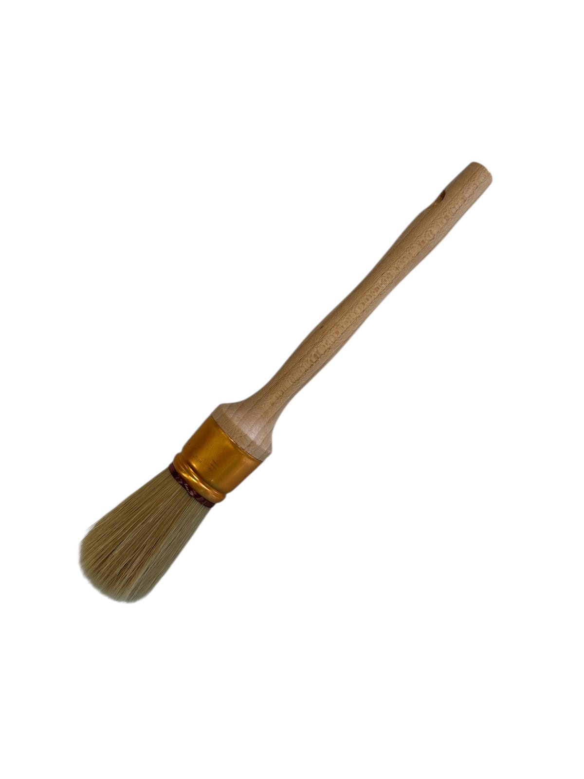 Brocha prensada fabricada en P/M y mango madera de haya encerada. Montada en virola de aluminio anodizado color cobre. Se puede utilizar para todo tipo de pinturas.